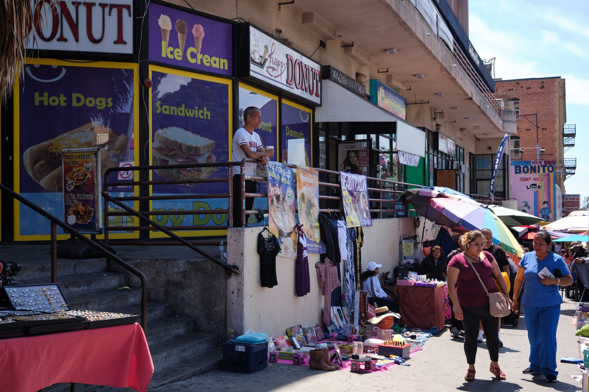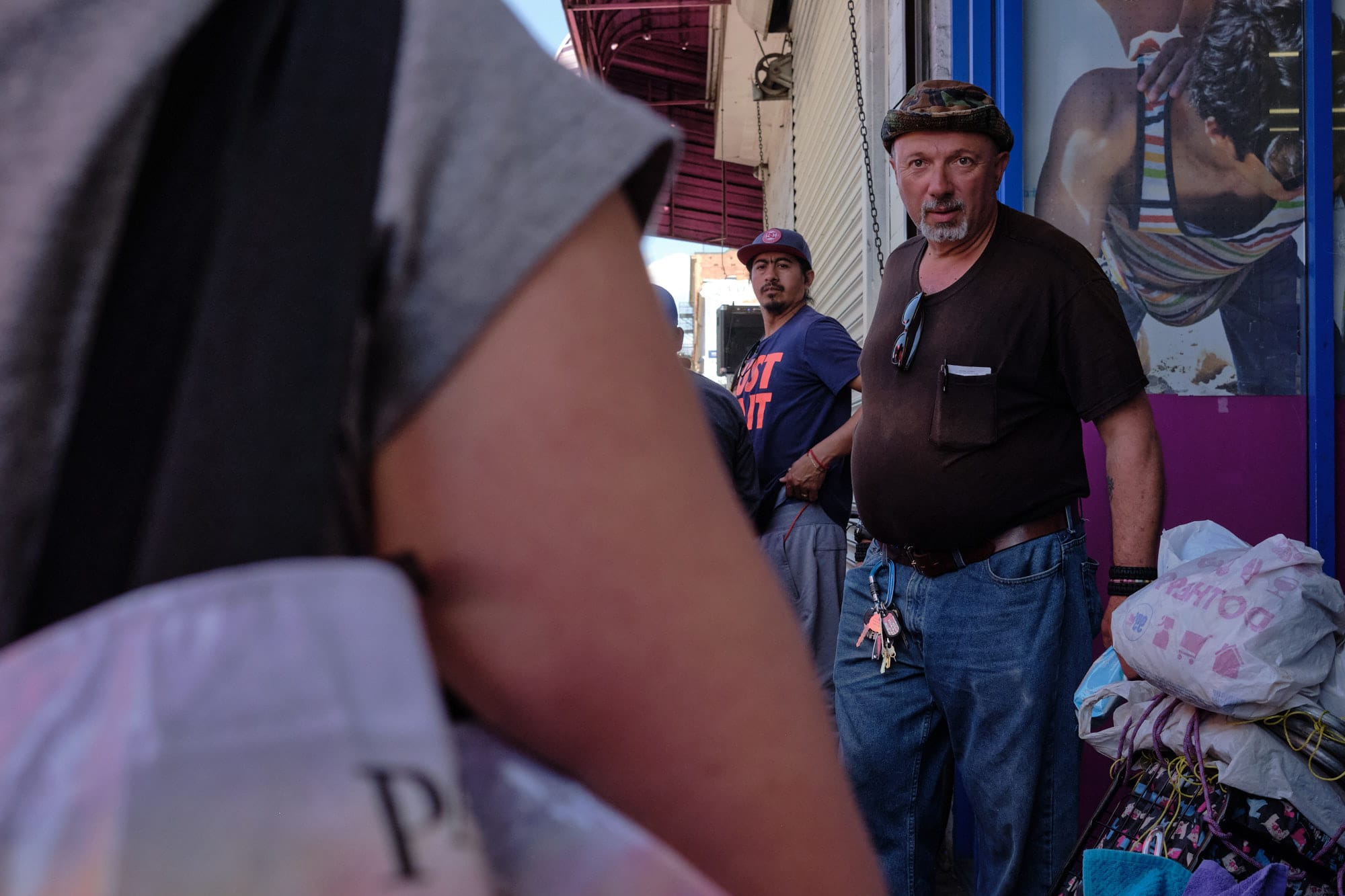 These photographs were taken during the tail end of an era, in 2019 before Covid upended everything in the city. Looking at the work from that time has made me realize that they depict a specific moment in time that is gone forever, a fact reinforced presently by the blocks of chain link fencing preventing vendors from setting up shop.
