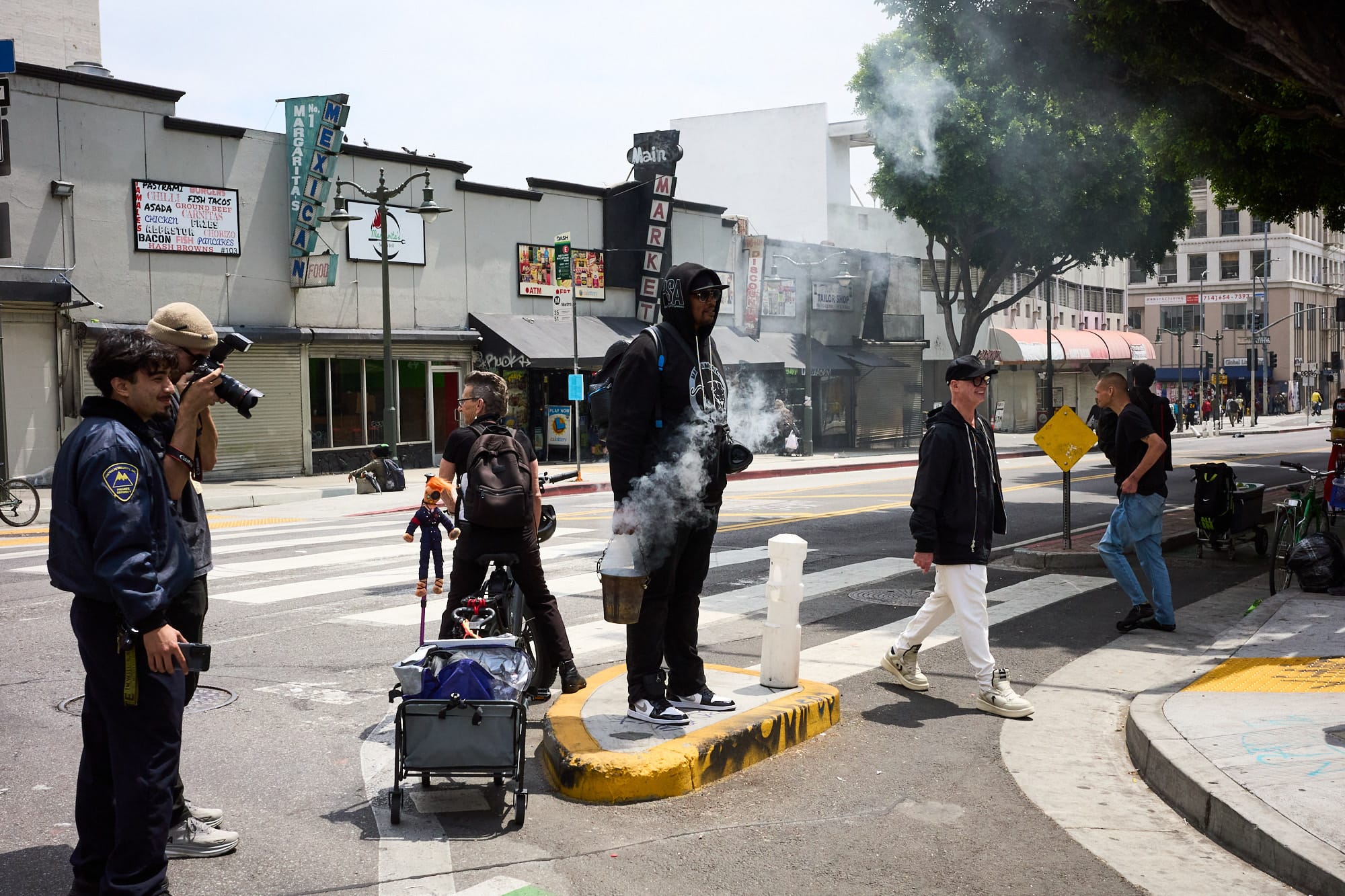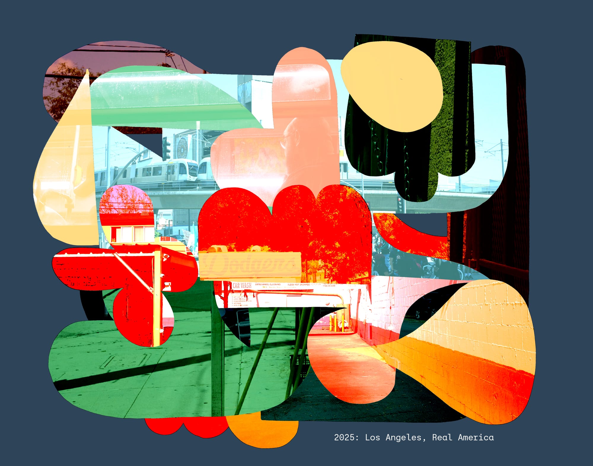 This set of images and accompanying collage is called "Los Angeles 2025, Real America". It's the latest entry in a series of photoessays that frames life in the city as an example of the true American experience for the majority of the country, instead of the foreign place that mainstream media portrays it as. The truth is, the city is the embodiment of everything the government is trying to eradicate regarding immigration, diversity, and political affiliation.