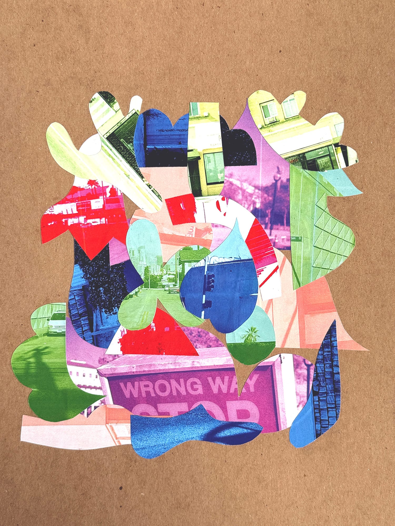 Along those lines, I began using my abstract, shape drawings as a framework to present my photography in a new way. Acting as both the collage artist and the photographer allowed me to delve deep into my archive to select images that were tied to specific themes. I call this body of work "Redacted Topographies", a reference to the sharing of hidden experiences and location based interpretations pulled from my archive. The deconstructed/reassembled photographs incorporated into this work explore the complex network of people, lost structures, and disappearing communities that make up Los Angeles.