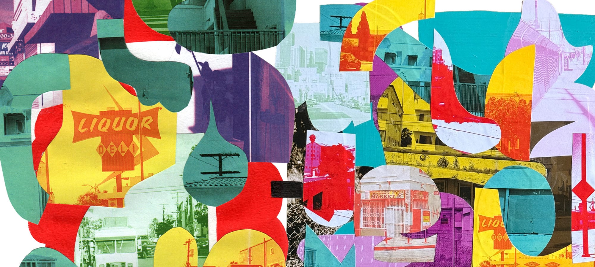 New artist statement and a dedicated page for the "Redacted Topographies" series of collage illustrations.